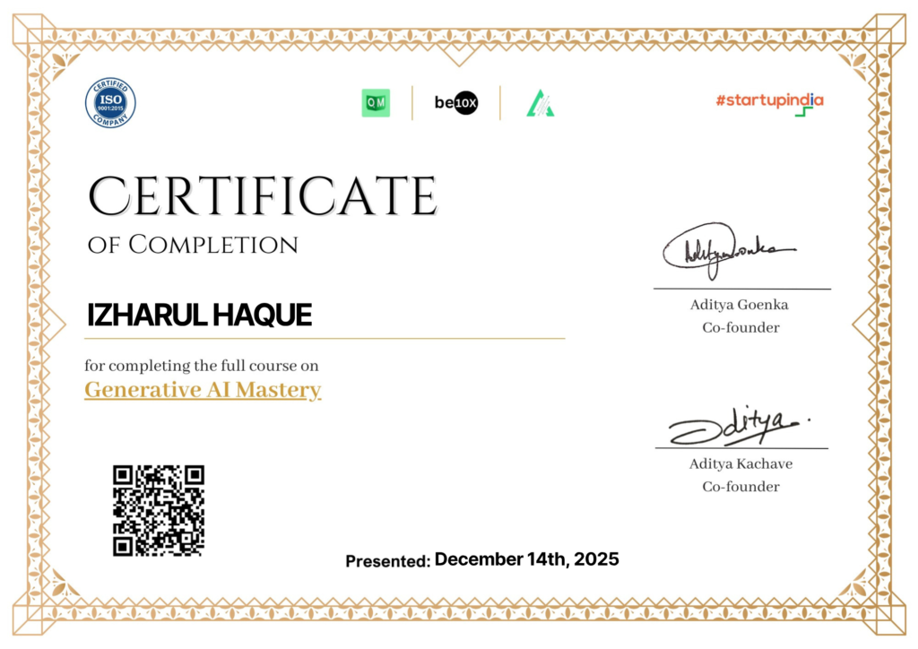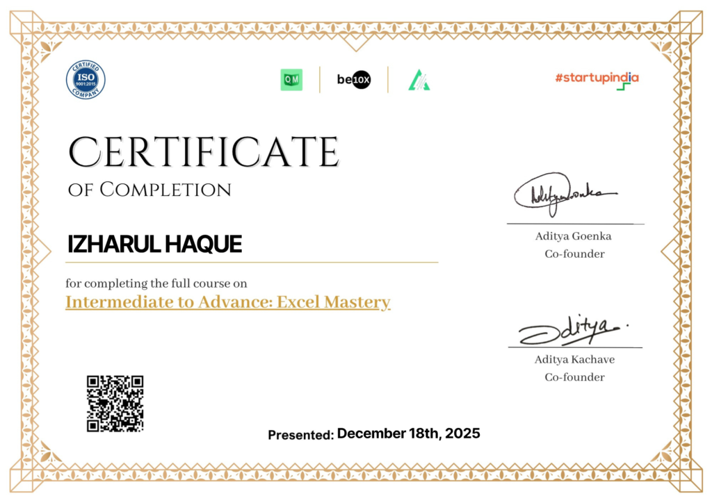 I have completed various professional development programs focused on improving productivity, business thinking, digital skills, and the effective use of modern tools including AI-based solutions. These courses helped me enhance both technical abilities and professional mindset required in today’s fast-changing work environment.